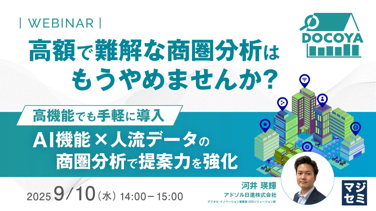 マジセミ株式会社は「【メーカー・小売必見】高額で難解な商圏分析はもうやめませんか?」というテーマのウェビナーを開催します。