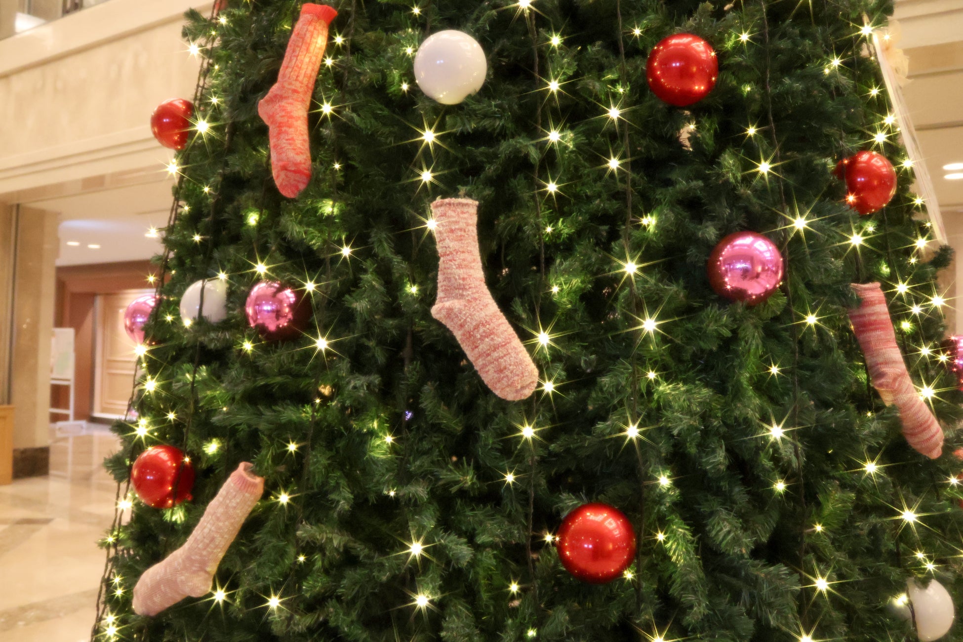 【ホテル日航奈良】日本一の靴下生産地「奈良」の靴下が彩る20周年記念クリスマスツリー