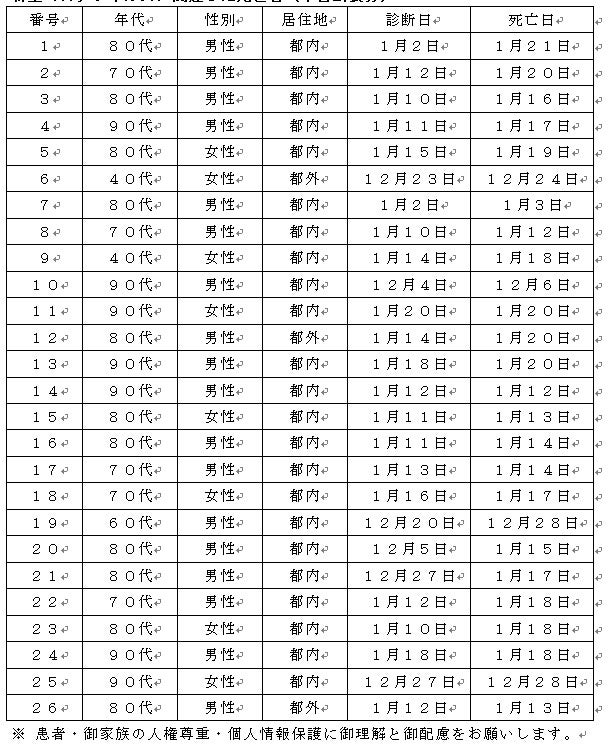 都内で新型コロナウイルスに感染した方が死亡されましたのでお知らせします。