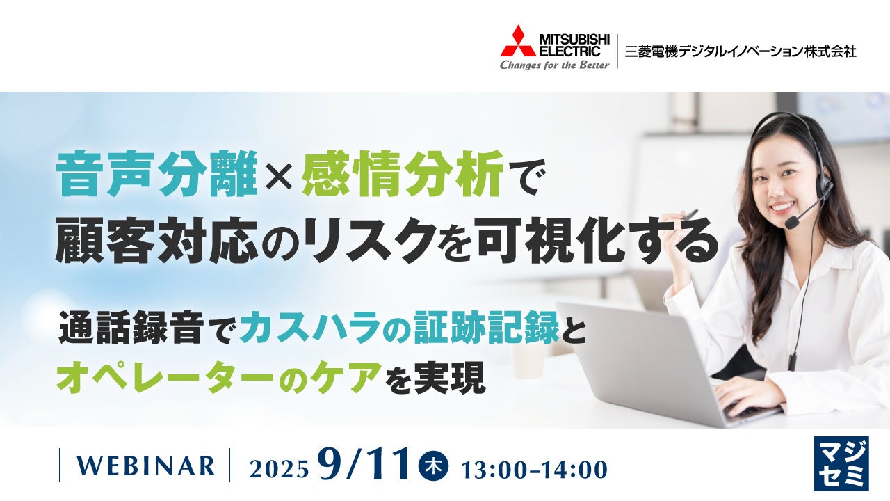 マジセミ株式会社は「音声分離×感情分析で、顧客対応のリスクを可視化する」というテーマのウェビナーを開催します。