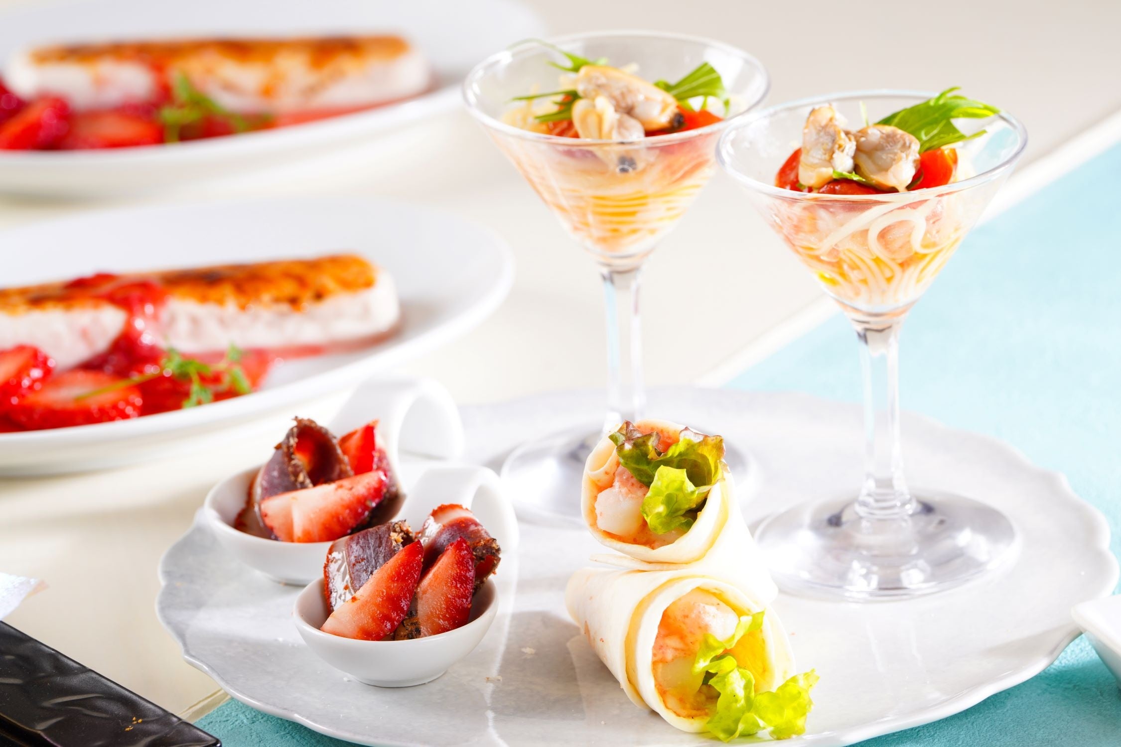 ・あさりと「海辺のトマト」の冷製パスタ ・明太ポテトのトルティーヤロール