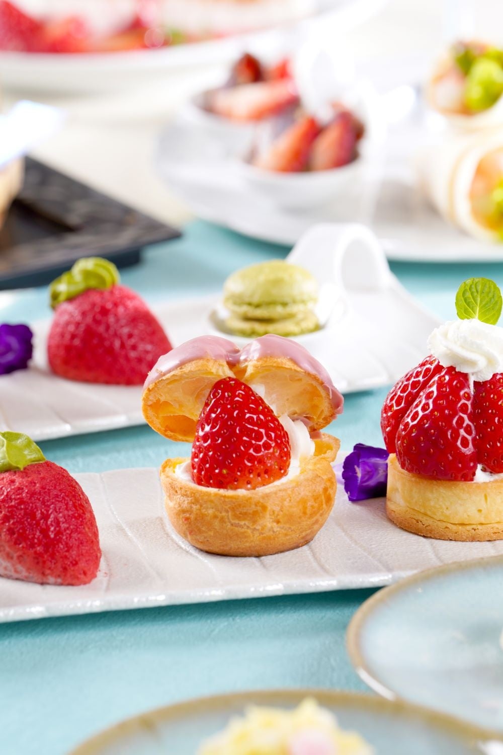 ・抹茶のマカロン ・煎茶のブランマンジェ ・いちごのカタラーナ ・スコーン