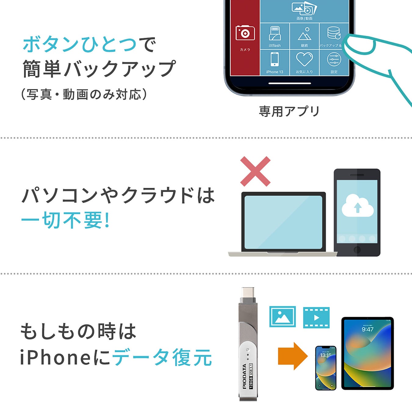 写真・動画を簡単にバックアップ&復元!ライトニング・Type-Cどちらにも使えるUSBメモリを3月15日に発売