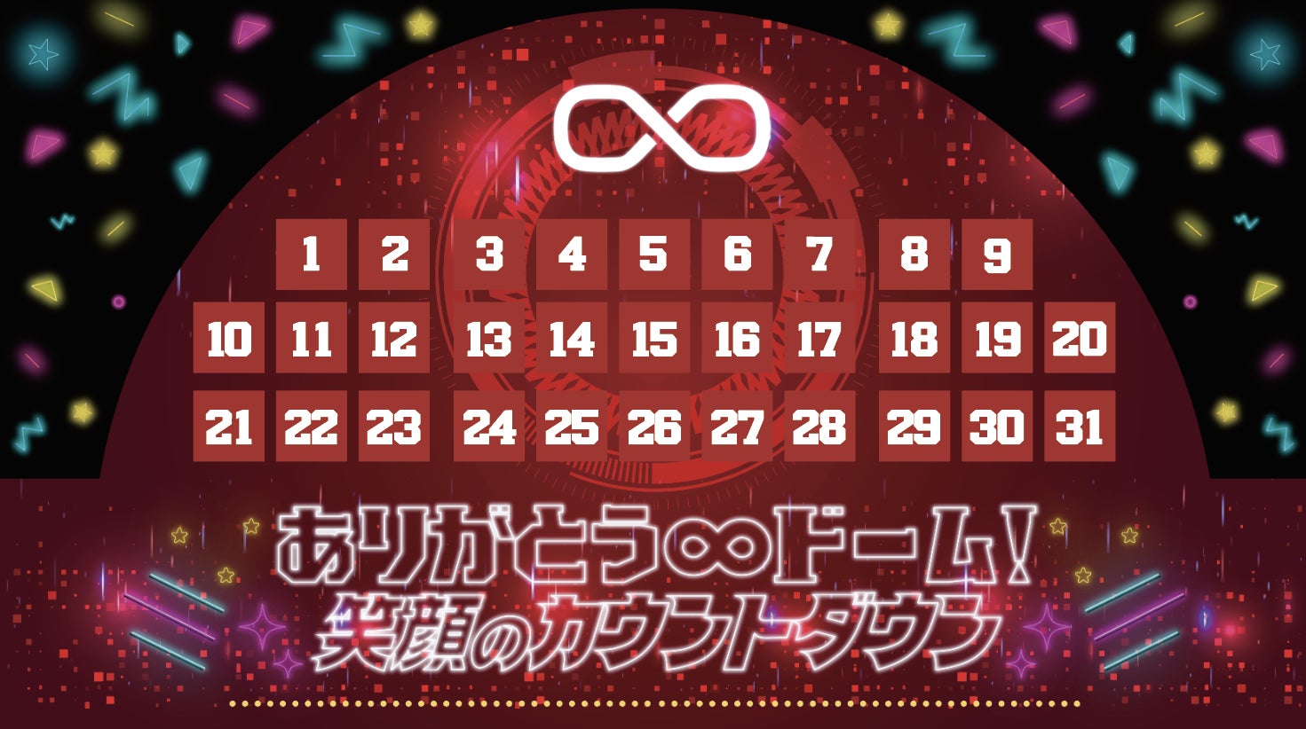 5月1日(木)からは毎日、カウントダウンをお楽しみいただけます。 1日1マスずつ開けるたび、∞ドームにゆかりのある芸人たちのメッセージが現れます!