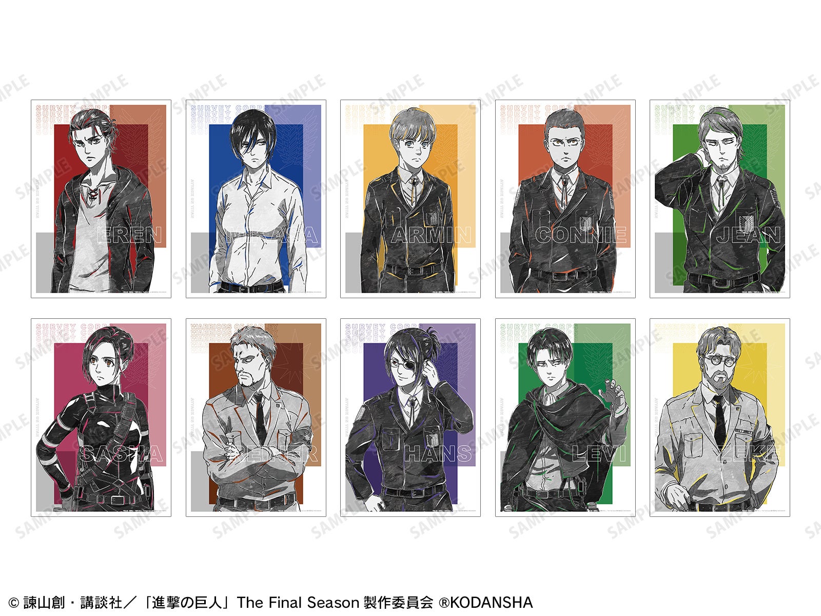 今回のイベントに向けて、『進撃の巨人』より、「エレン」をはじめ総勢16人のキャラクターたちのAni-Artイラストをご用意いたしました。Ani-Artイラストを使用した商品を多数先行販売する他、お買上げ抽選会などの実施を予定しております。