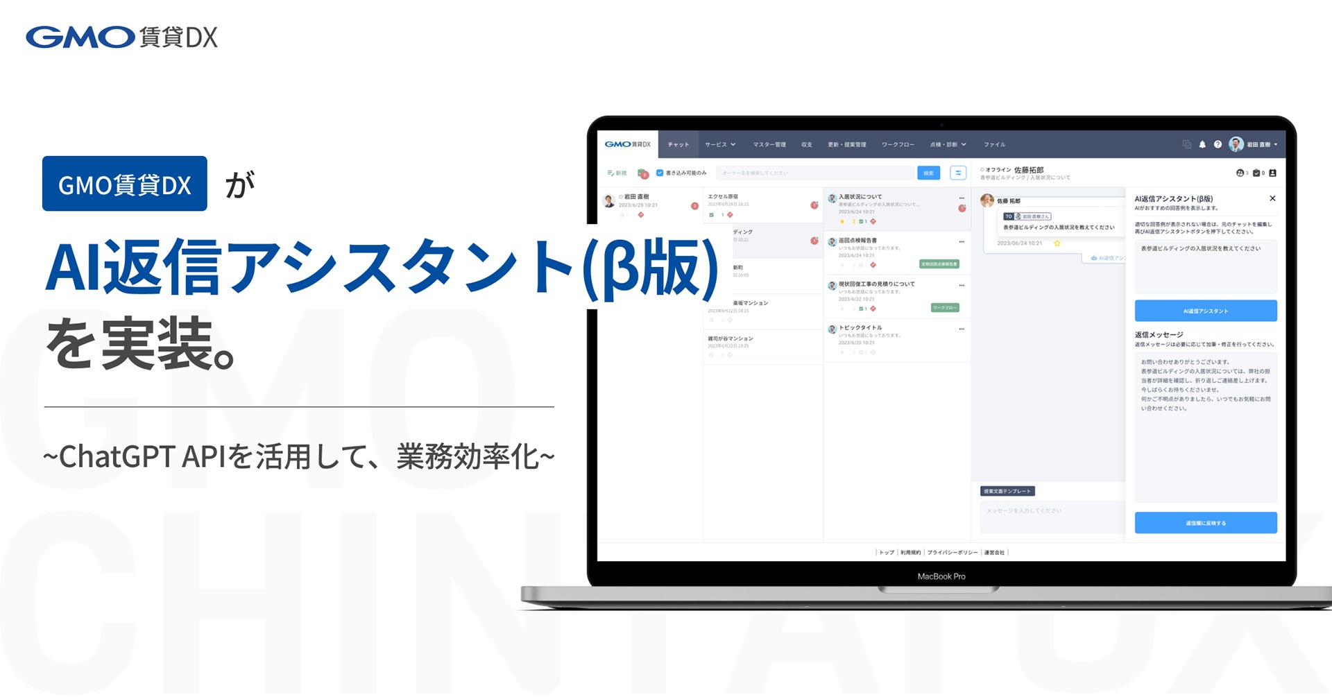 「GMO賃貸DX」が『AI返信アシスタント(β版)』を実装【GMO ReTech】