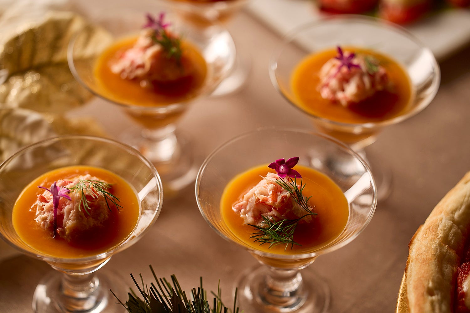 また、ブッフェテーブルには「バターナッツスクワッシュのブランマンジェ 紅ズワイガニサラダ添え」や「鴨スモークと茄子のタリアータ バルサミコソース」「鹿児島県産黒豚のポルケッタ ロベールソース」「カサゴとアサリのブレゼ 柑橘風味」などの聖夜を彩るごちそうをはじめ、「ブッシュ・ド・ノエル」「ストロベリーとマスカルポーネムース」などのデザートが華やかに並ぶほか、ピザ窯から焼き立てを提供する「マルゲリータ」なども登場します。