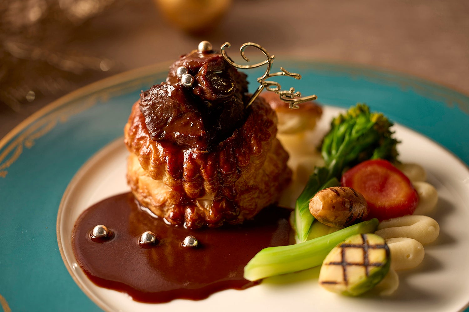 メインディッシュは、「ロブスターテルミドール」や「パイケース入りブッフ・ブルギニョン」をはじめ、アワビやフォアグラなどを使用した豪華な6品から、お好みの1品をお選びいただけます。