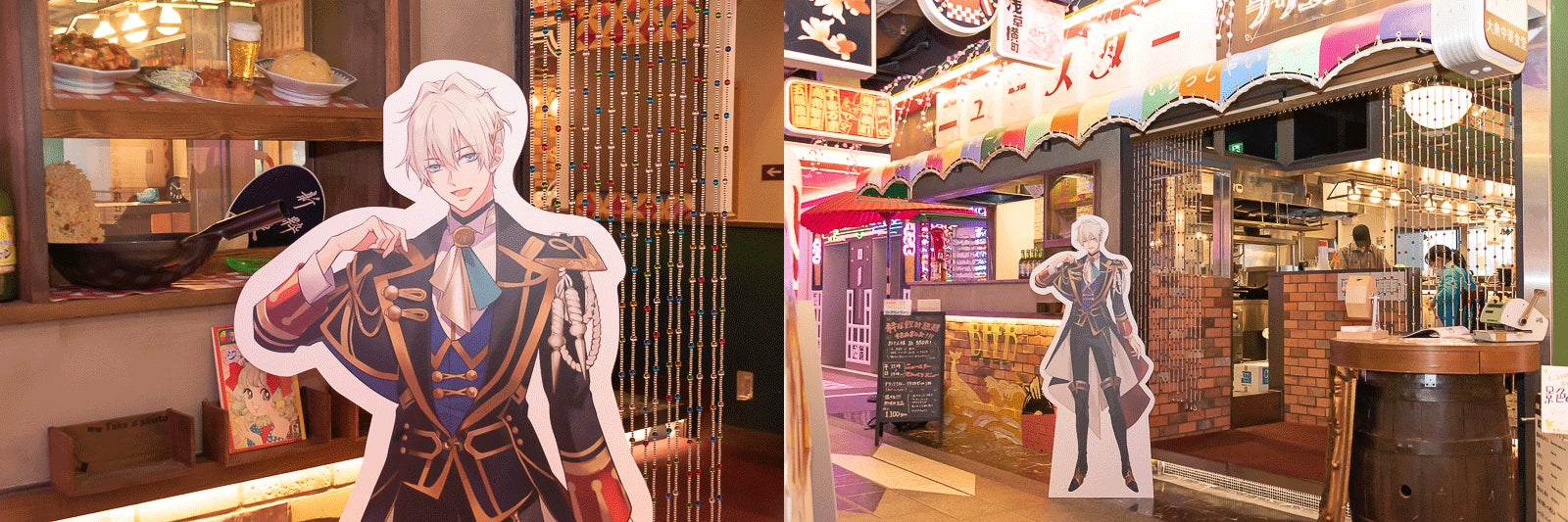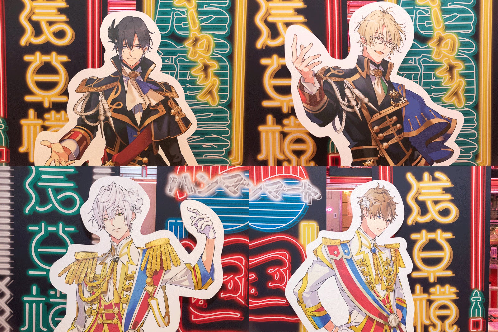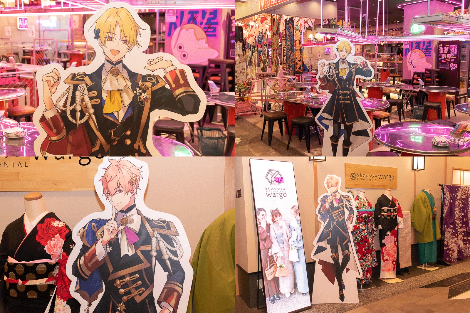 浅草横町内コラボ飲食店、きものレンタルwargo 東京浅草店、フロアイベントスペースには、『ツキウタ。』メンバーのパネルが展示されています。