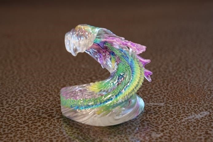 ・作品の特長と受賞のポイント:造形力や表現力に優れ、2Dでは再現できない3Dプリンタならではのアート作品で、水のきれいな透明感がすばらしい。デザインや発色など、3Dプリンタの使い方を熟知しており、2つの応募作品を合わせて優秀賞を受賞。