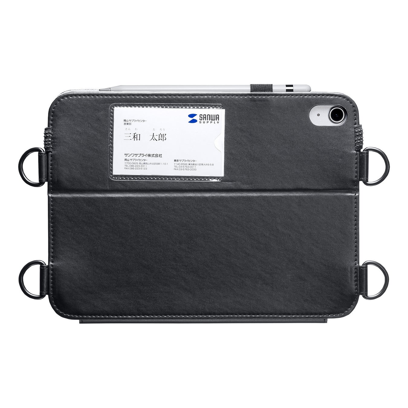 Appleペンシルを収納できる便利なペンホルダー付きで、持ち運びや収納の際にAppleペンシルが紛失するのを防ぎます。背面には名刺ポケットがついており、大量導入時の機器の管理に便利です。