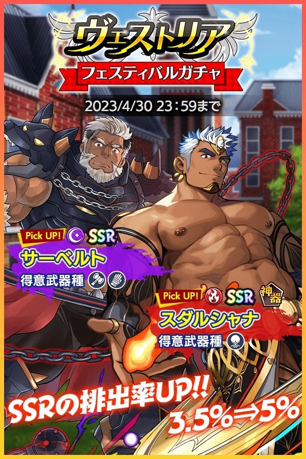 SSRの入手確率が大幅にUPした「ヴェストリア フェスティバルガチャ」が期間限定で登場!
