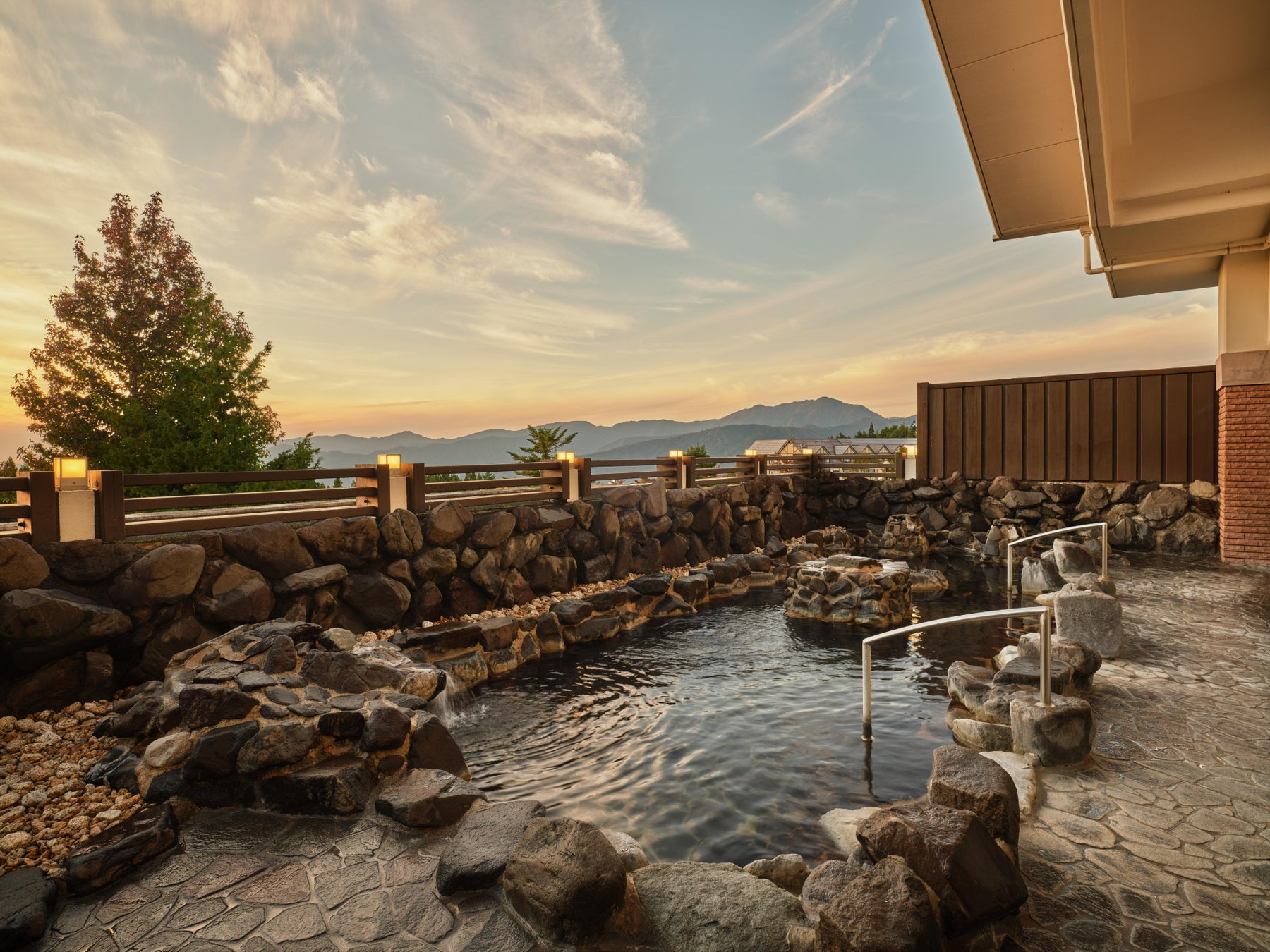温泉の水質はトゥルっとした質感で、湯が肌をやさしく包み込み、湯上がりには思わず触れたくなるような、すべすべの心地よさ。ジャグジーやサウナも備え、心も体もゆったりとほぐれていきます。露天風呂からは山並みに沈む夕日や満天の星空をご覧いただけます。