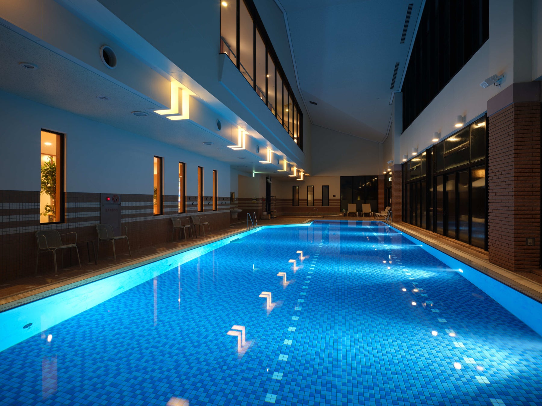 屋内プールは宿泊者限定で朝7時から利用可能。日中は日帰り利用もあり、お子様の笑顔が広がるプールエリアも夕刻からは照度を抑えたナイトプールとなり、上質な空間へと表情を変えます。