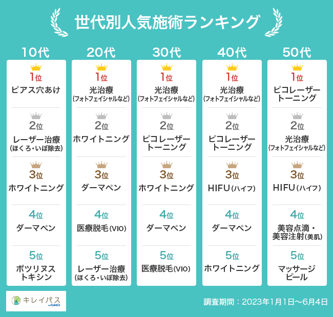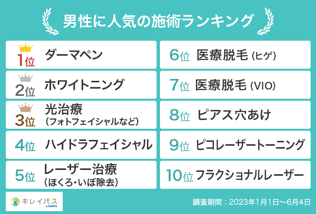【「キレイパス byGMO」美容医療年間人気ランキング2023年上半期】