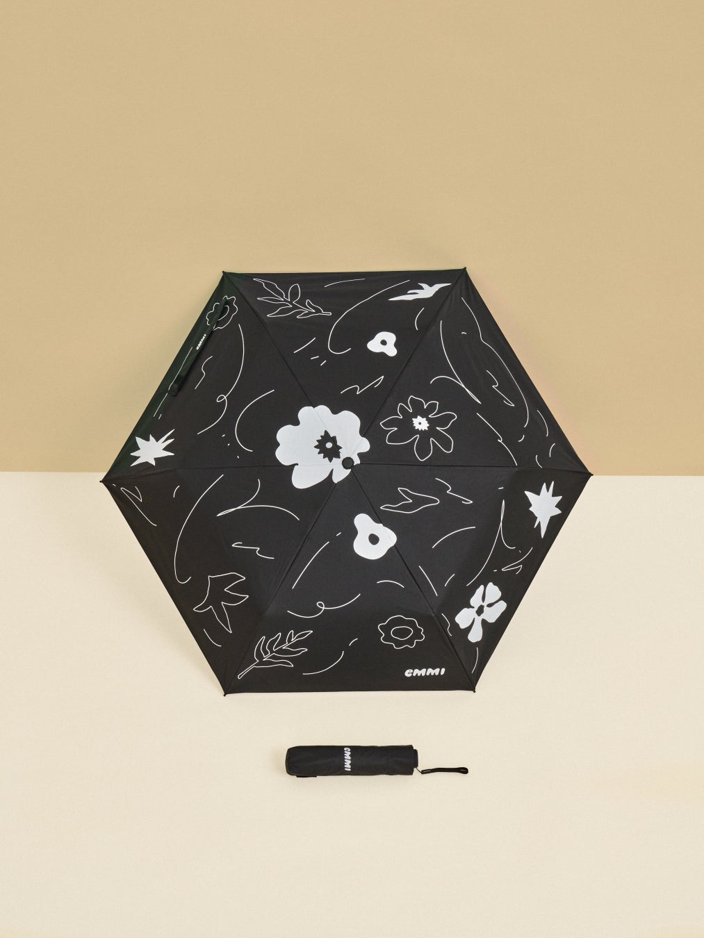 やさしい色合いをベースに大きめのフラワーモチーフを散りばめたベージュと、シンプルな佇まいの中にボタニカルフラワーをさりげないワンポイントとしてあしらったネイビーの2柄展開です。