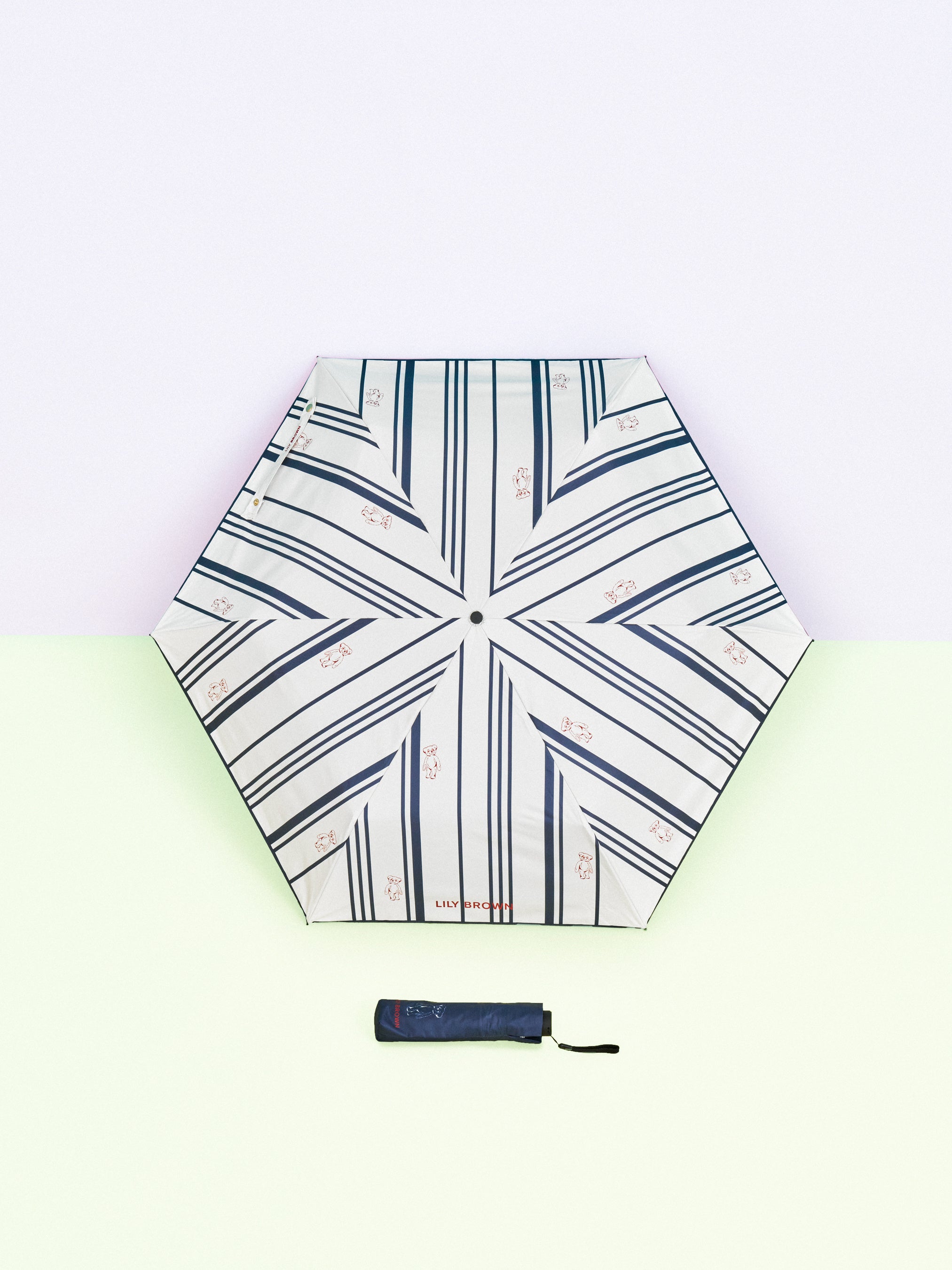 オリジナルスカーフ柄とランダムストライプ柄のそれぞれに、大人気のLily Bearを散りばめたプリントを2柄製作しました。