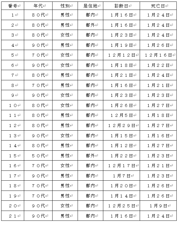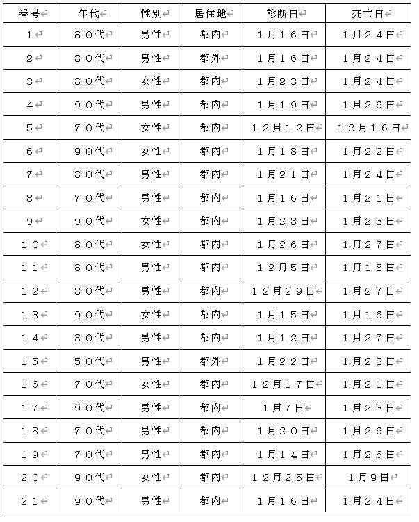 都内で新型コロナウイルスに感染した方が死亡されましたのでお知らせします。