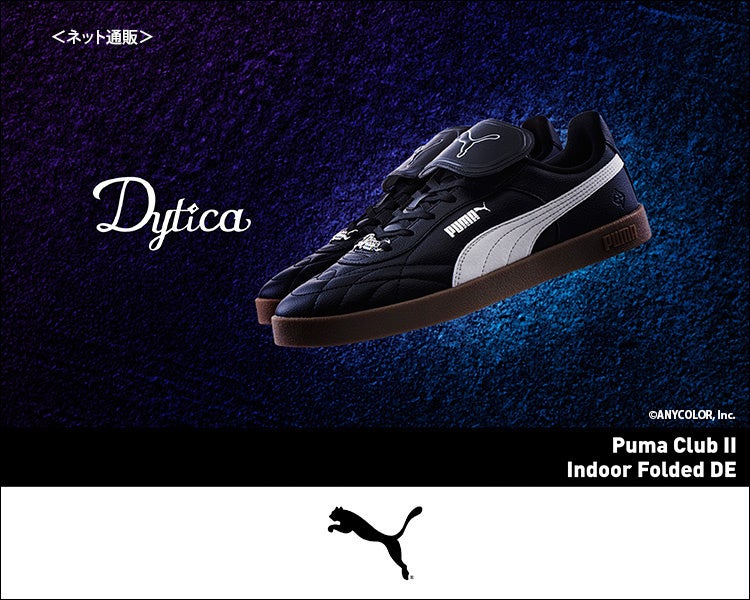 PUMAのスニーカーモデル「Puma Club II Indoor Folded」をベースにコラボレーション仕様としてさりげなくDyticaのロゴやライバーのモチーフを配置。