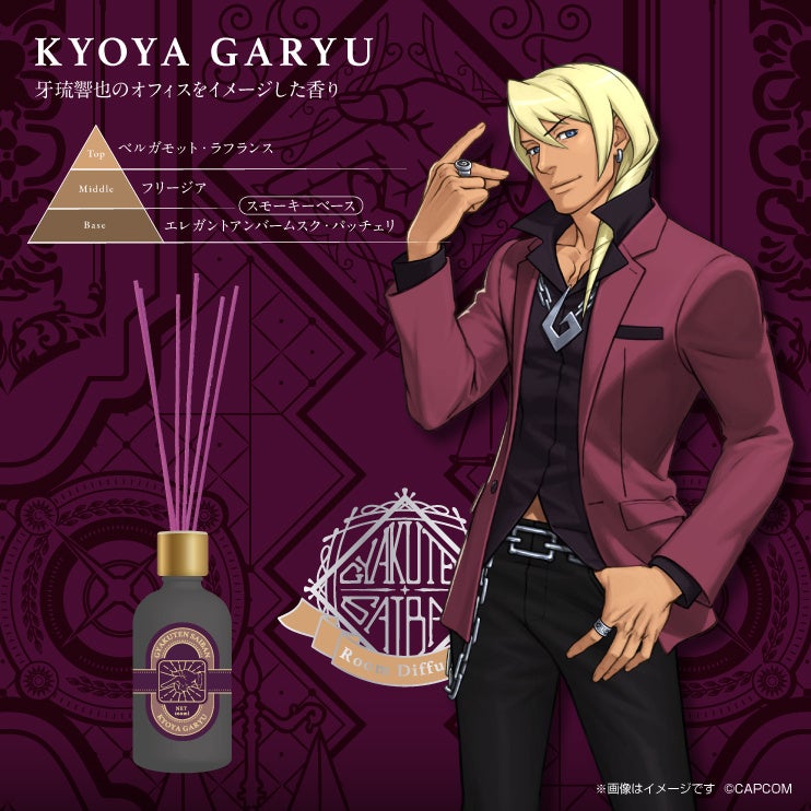 2024年1月25日(木)に発売する『逆転裁判456 王泥喜セレクション』を記念して、香り雑貨ブランド『fav’s room TOKYO(ファブルームトウキョウ)』より「成歩堂龍一」「御剣怜侍」「王泥喜法介」「牙琉響也」「夕神迅」をモチーフとしたディフューザーの発売が決定! 本日より予約開始となります。
