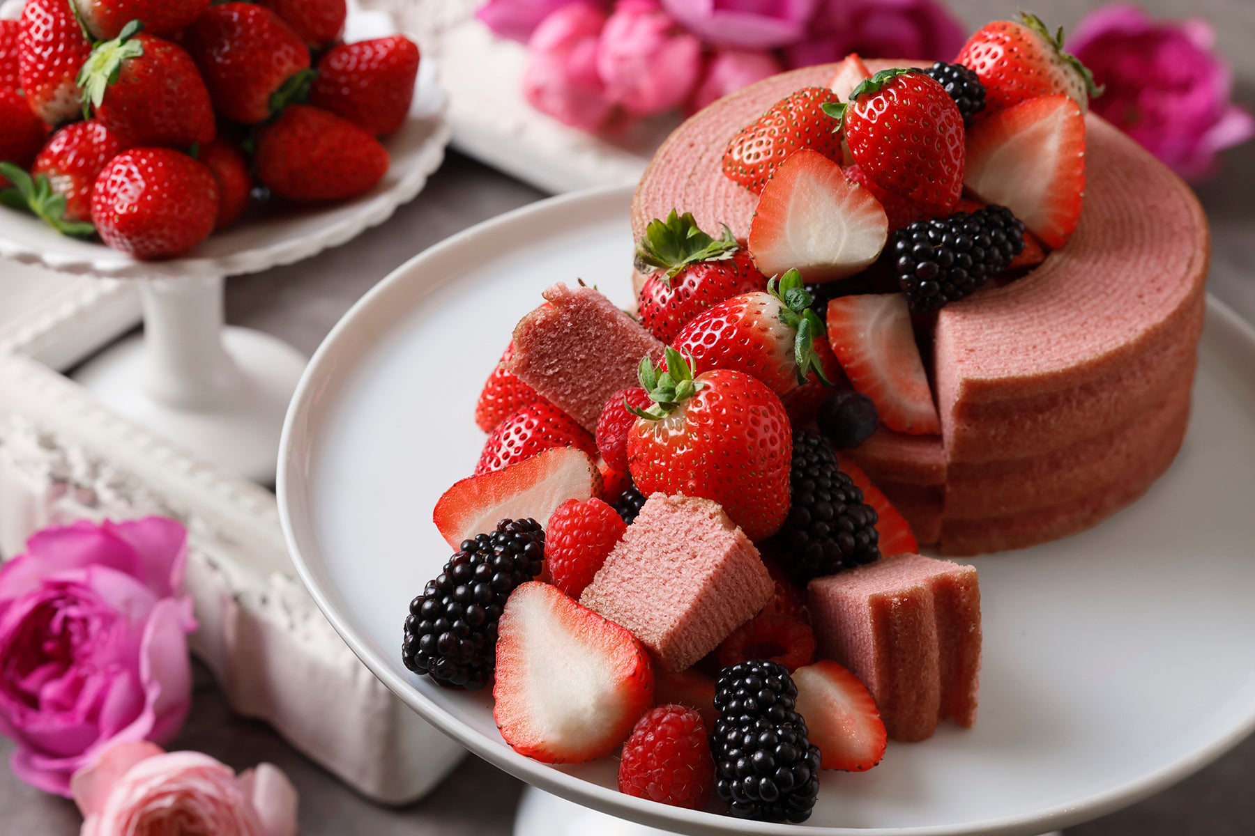 その他、いちごをあふれそうなほど盛り付けた「いちごショートケーキ」や、いちごやベリーの爽やかな酸味とともに楽しめる「いちごのバウムクーヘン」など、種類豊富ないちごスイーツが登場します。
