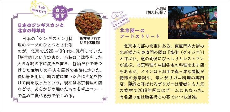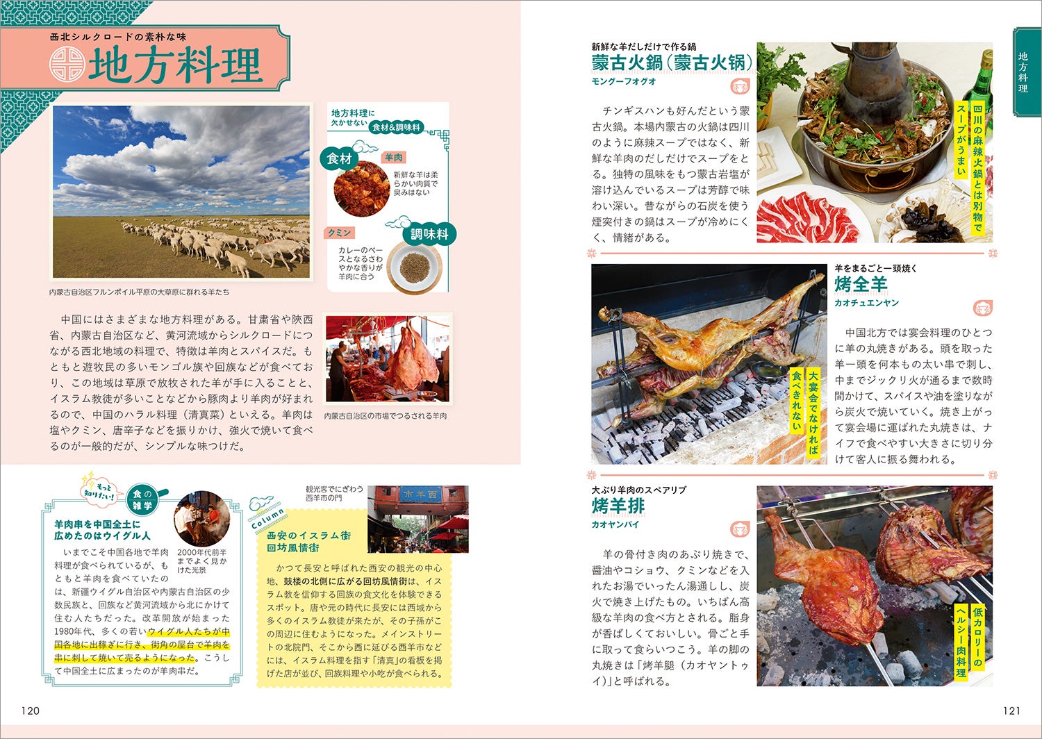 中国のお酒にスイーツ、朝食や調味料、驚きの珍料理まで楽しいミニ図鑑も。中華料理の食文化や、現地の食事情を掘り下げる読み物もたっぷり用意しました。
