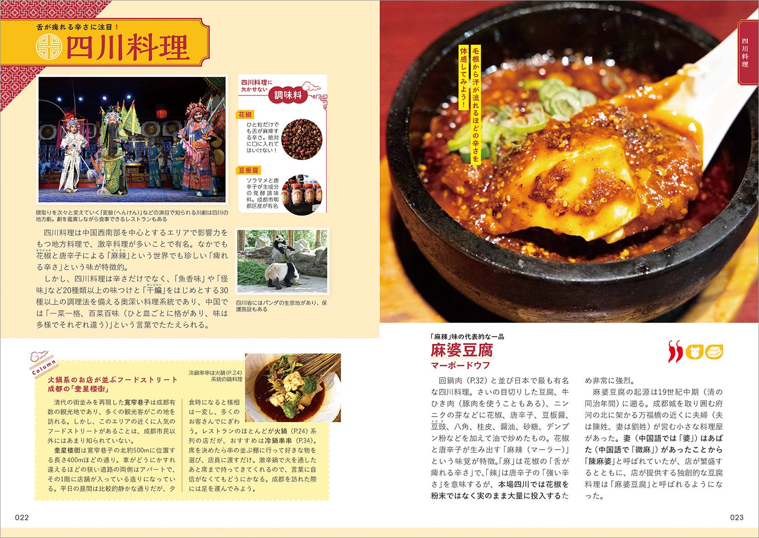 中国茶やスイーツ、お酒に調味料のミニ図鑑も必見。中国の家庭料理や、宴会料理、外食チェーン、日本で急増中のガチ中華・マジ中華の背景など、中華料理と中国を知るための読み物コラムも満載です。