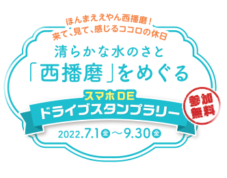 【名称】清らかな水のさと「西播磨」をめぐる スマホDE ドライブスタンプラリー【期間】7月1日(金)~9月30日(金)