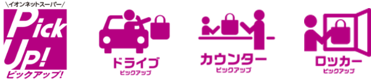 スマホやパソコンから注文した商品を店舗から自宅にお届けする「イオンネットスーパー」では、生鮮食品や冷凍食品、総菜などの食品から、おむつ、トイレットペーパーなどの日用品まで品揃えします。また、ネットスーパーで注文した商品を店頭にて受け取れる「ピックアップ!」では、車に乗ったまま受け取りができる「ドライブピックアップ!」、店内のサービスカウンターで受け取りができる「カウンターピックアップ!」、出入口に設置されたロッカーで受け取りができる「ロッカーピックアップ!」を導入しています。そのほか、実家や離れた場所にお住まいの家族など、ご自宅以外の住所へのお届けを選択できる「お届け先変更便」 サービスも実施しています。