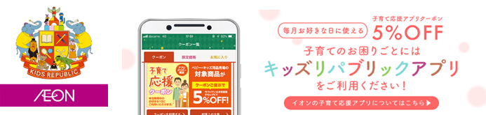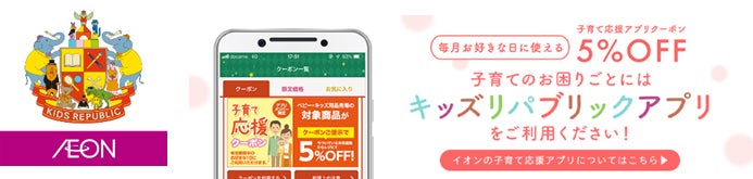 ◆イオンの子育て応援アプリ「キッズリパブリックアプリ」は、妊娠中から子育てまでのお役立ち情報や、お買得商品のクーポンなどを配信します。さらにアプリ会員は、妊娠中のご自身に関する悩みやお腹の赤ちゃん、お子さまの体調などについて、スマホで産婦人科医や小児科医へ10分間無料相談できるサービスもご利用いただけます。産前産後を通してきれ目のないケアの提供により、ママや子育てファミリー、お子さまの健やかな成長をサポートします。