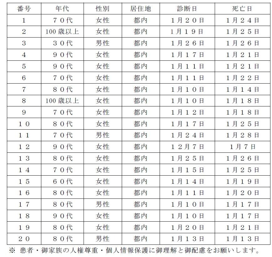 都内で新型コロナウイルスに感染した方が死亡されましたのでお知らせします。