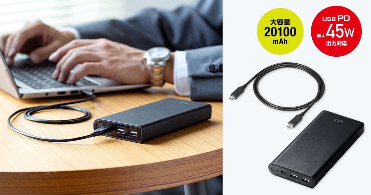 USB Power Delivery45W出力対応、ノートパソコンが充電できるモバイルバッテリーを発売
