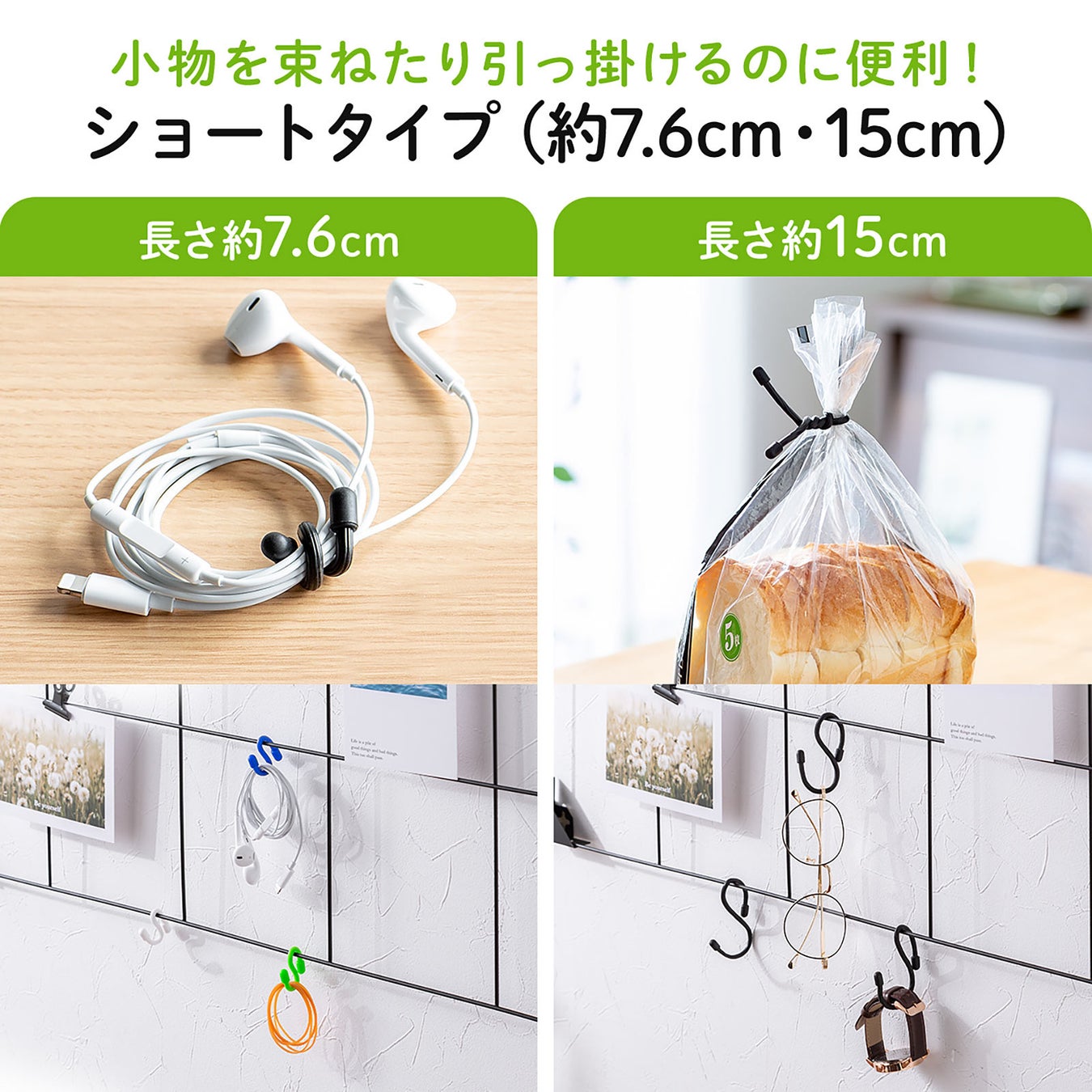アイデア次第で、さまざまなシーンで活用できます。ケーブルやコードなど結束する物を傷付けることなく使用できます。