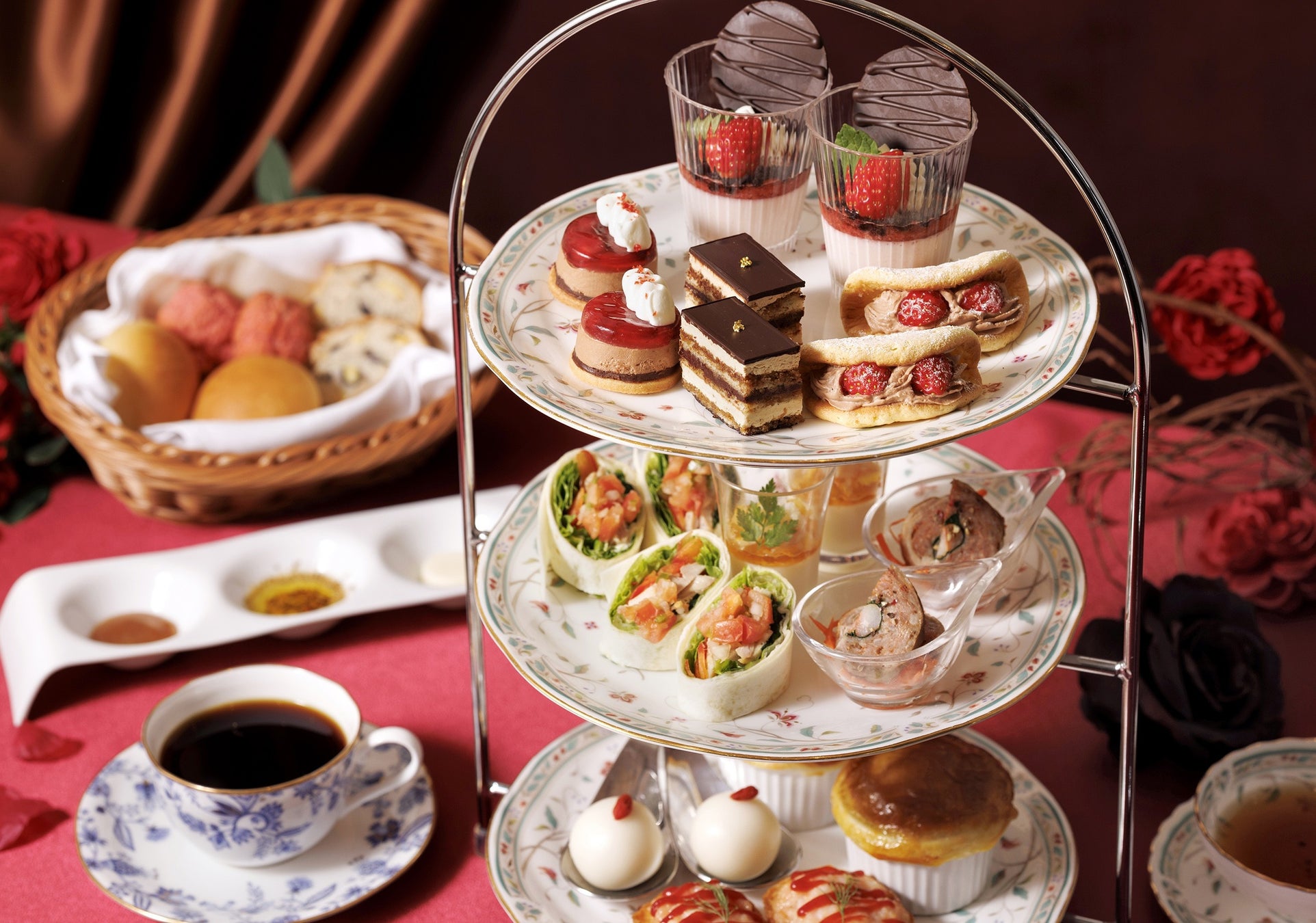 「The Lobby Lounge」では、季節のデザートプレートとして、バターの香り豊かなパイ生地に、苺やチョコレートクリームを重ねたミルフィーユをご用意します。期間限定のドリンクには、苺の甘酸っぱさにエスプレッソとスチームミルクを合わせたホットラテをお楽しみいただけます。人気のアフタヌーンティーセットには、艶やかな苺やチョコレートを使ったスイーツと、冬らしいメニューを織り交ぜたセイボリーが並び、特別なひとときを演出します。