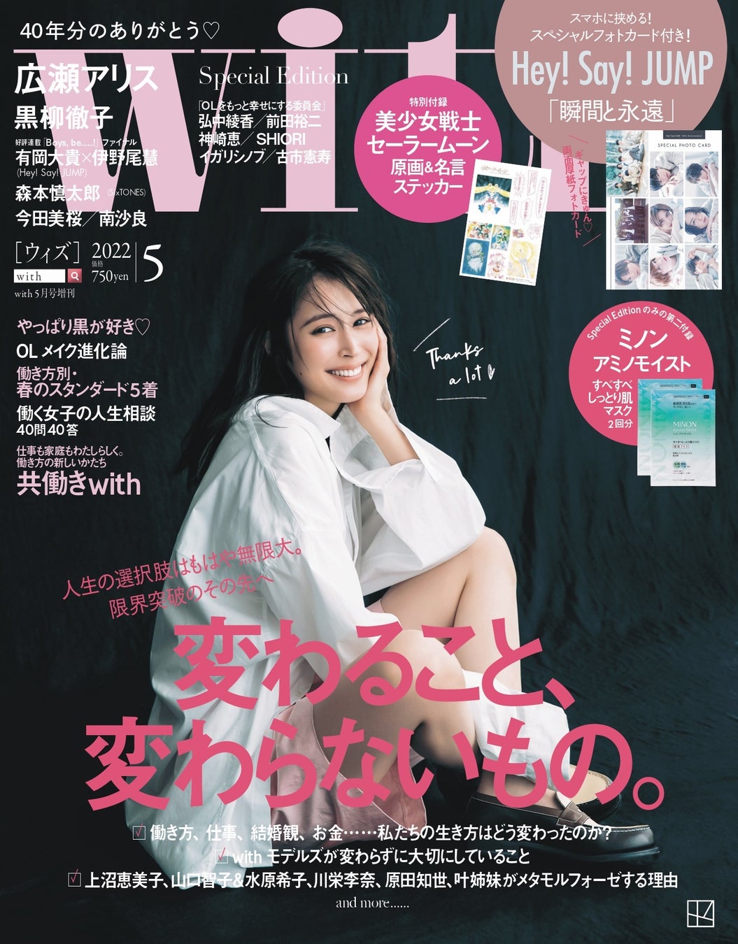 通常版はHey! Say! JUMP、Special Edition版は広瀬アリスがカバーに登場! 40年分のありがとうをこめたwith5月号は3月28日発売です