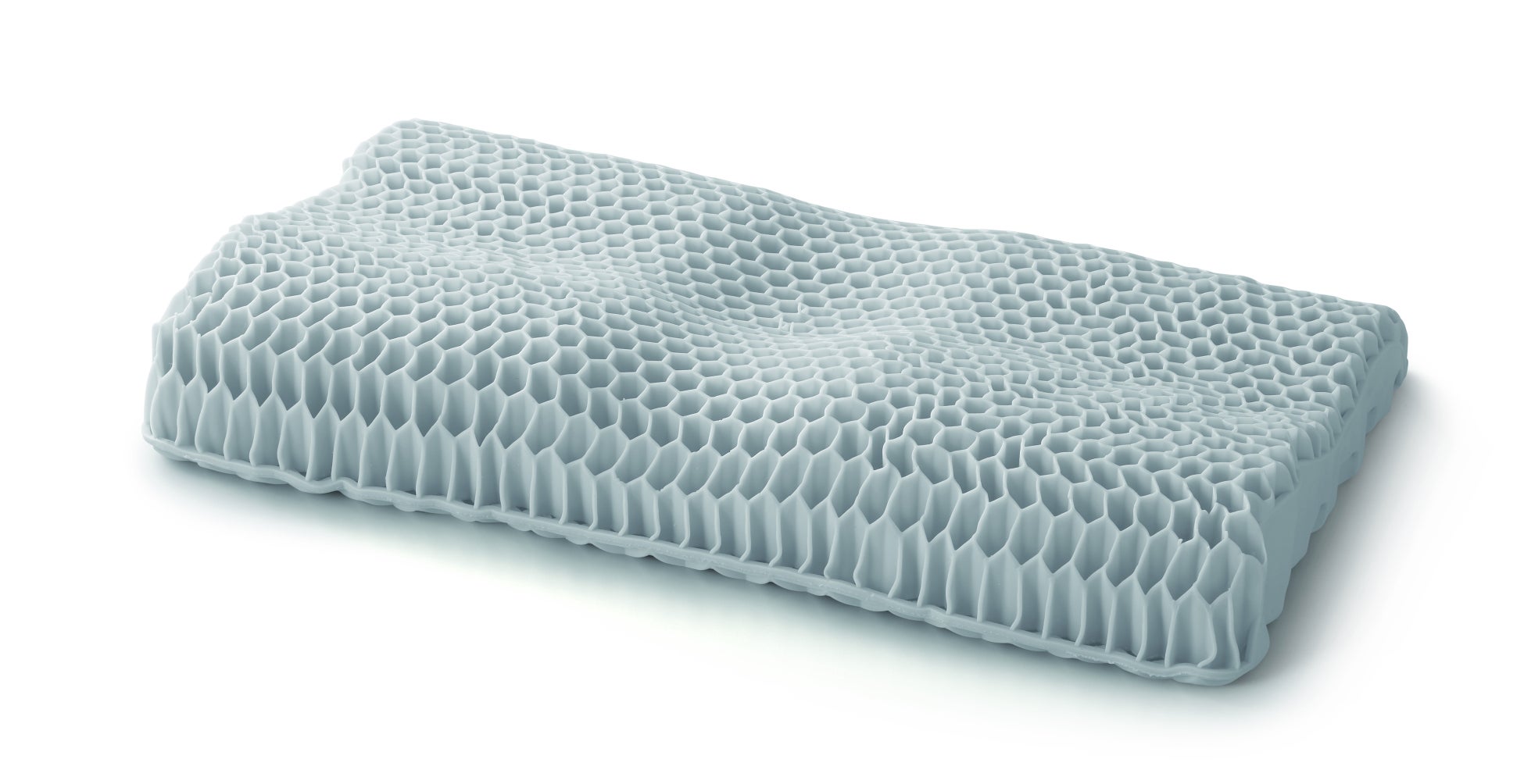 まくら素材の熱可塑性エラストマーは弾力性・柔軟性に優れ、また、立体的に加工しやすい特長があります。通気性に優れた立体構造で、睡眠時のムレ感を軽減します。