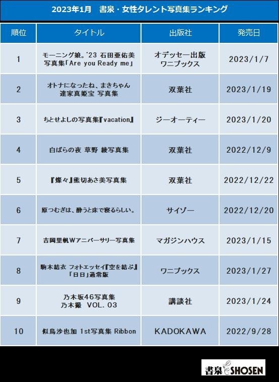 2023年1月「書泉・女性タレント写真集売上ランキング」発表!第1位は「モーニング娘。'23 石田亜佑美 写真集「Are you Ready me」」!