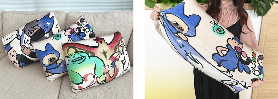 「狩猟の導き書」のイラストが、約W50×H35cmとBIGで触り心地がもっちもちな「クッション」に。