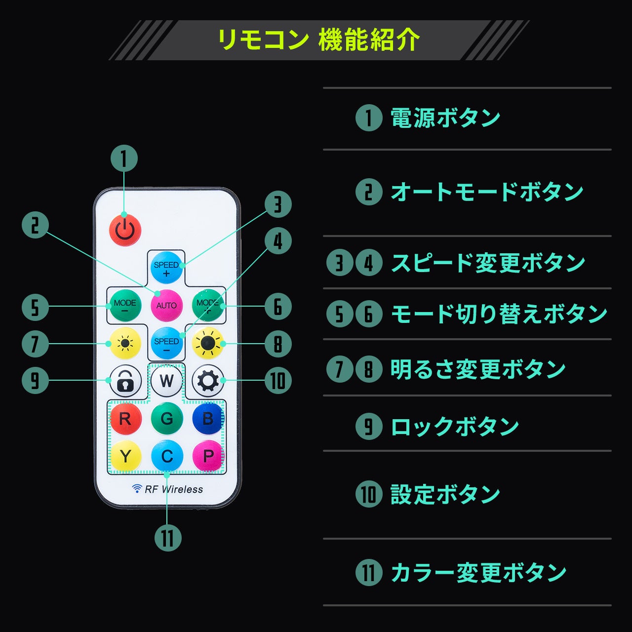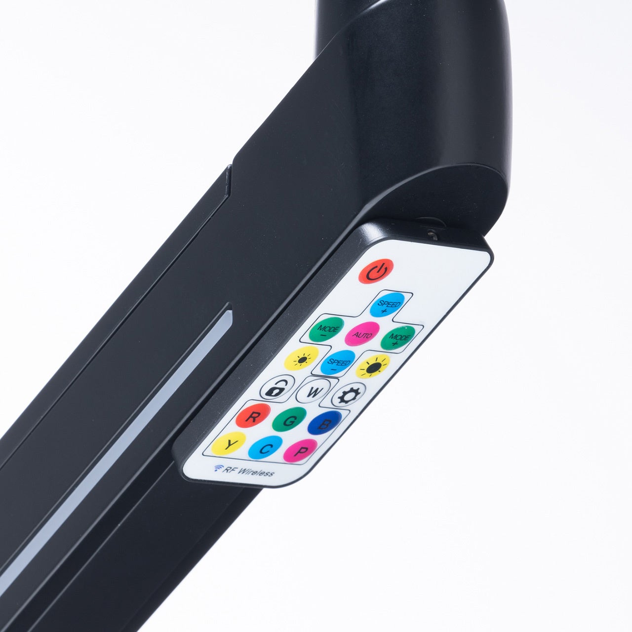 付属のリモコンを使用すれば点灯パターンや明るさの調整も可能です。デスクへの取り付けは、クランプ式で挟み込んでしっかり固定できます。