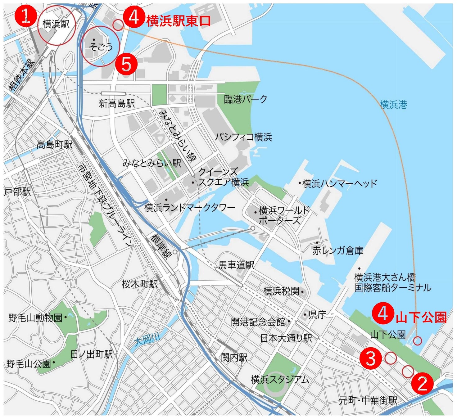 (4)Y Cruise株式会社 シーバス横浜駅東口(ベイクォーター内)乗り場と山下公園乗り場