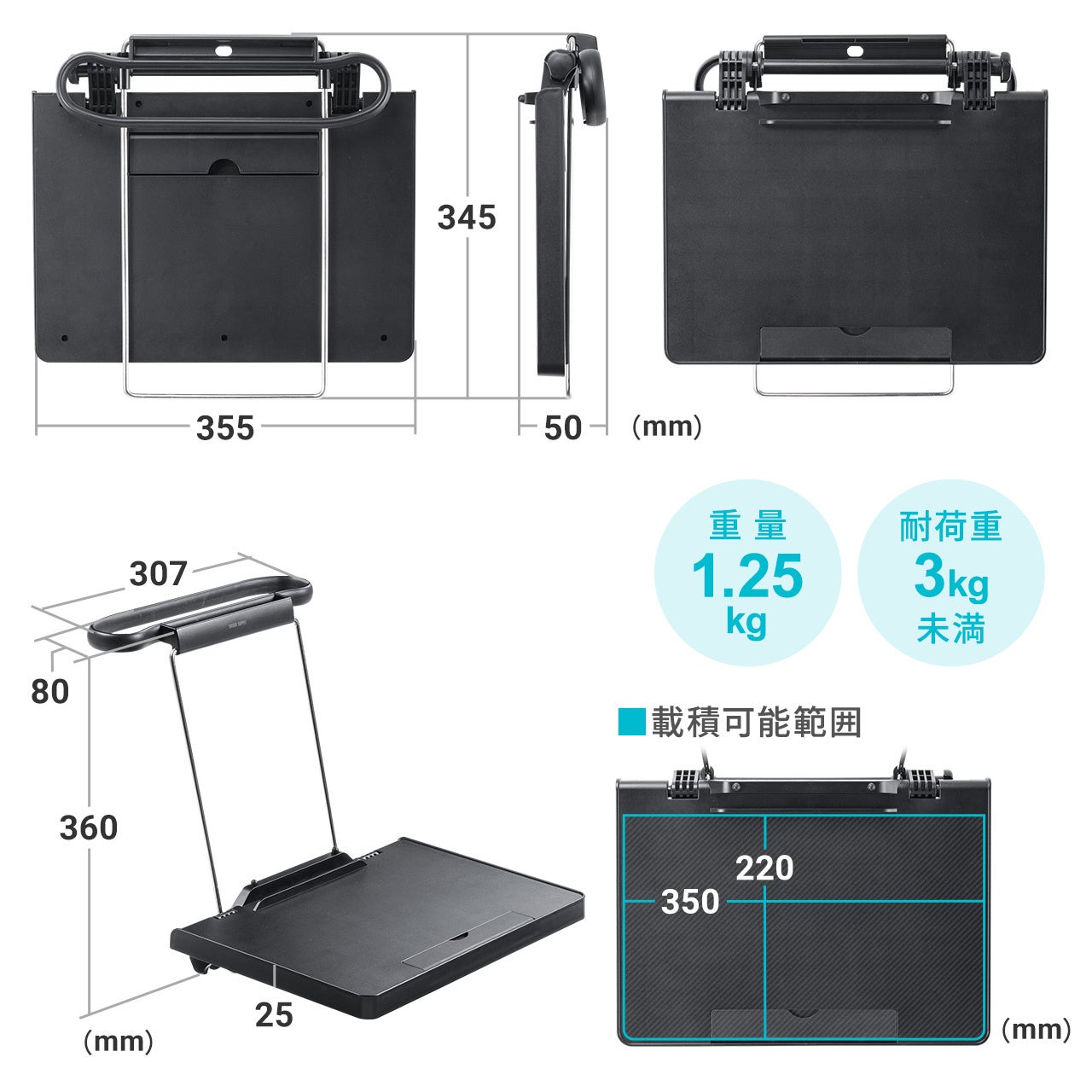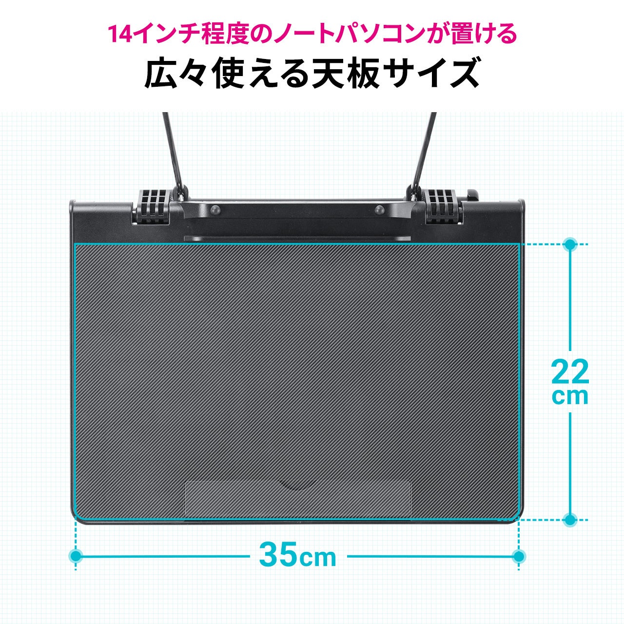 14型程度のノートパソコンを置けるゆったりしたサイズの天板サイズです。