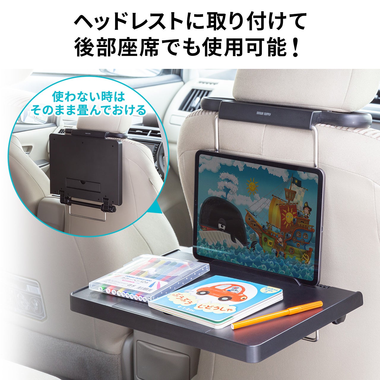 サンワサプライ株式会社(本社:岡山市北区田町1-10-1、 代表取締役社⾧ 山田 和範)が運営している直販サイト『サンワダイレクト』では、ハンドルにひっかけるだけでPC作業や食事に便利なテーブルとして使える。好みの高さ、角度に調整できる車載テーブル「200-CARTB001」を発売しました。