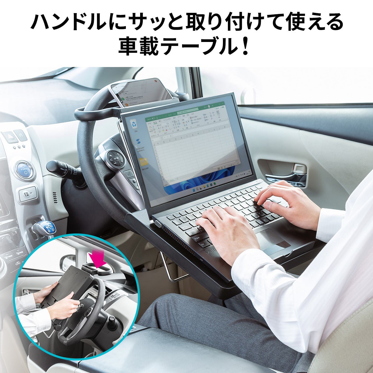 ハンドルに引っ掛けてすぐに使える車載テーブルを4月5日に発売