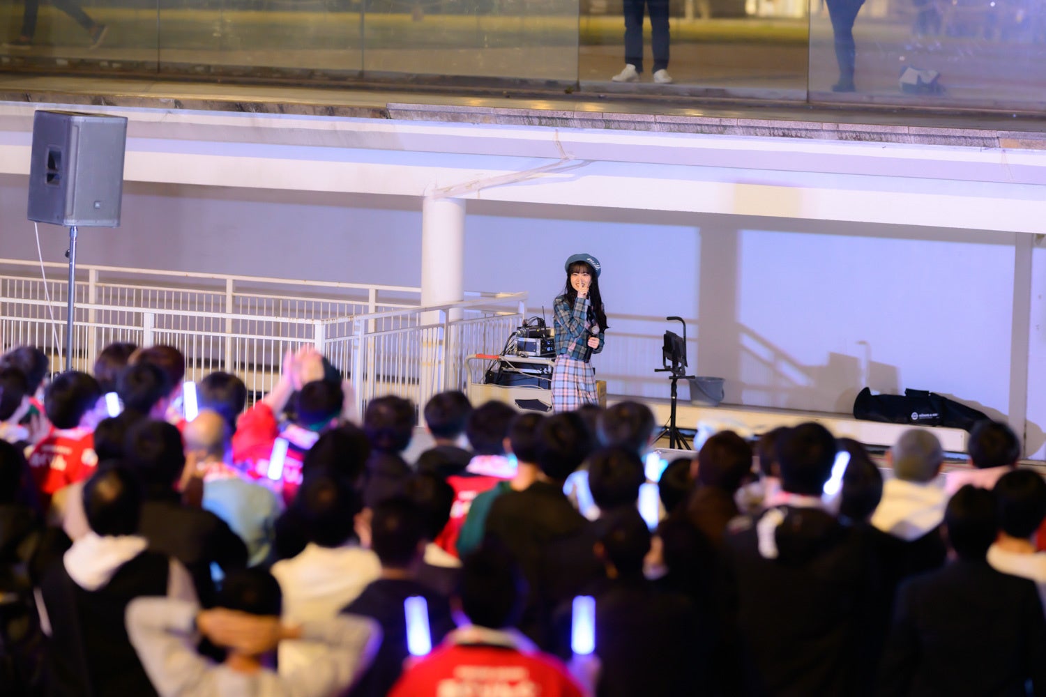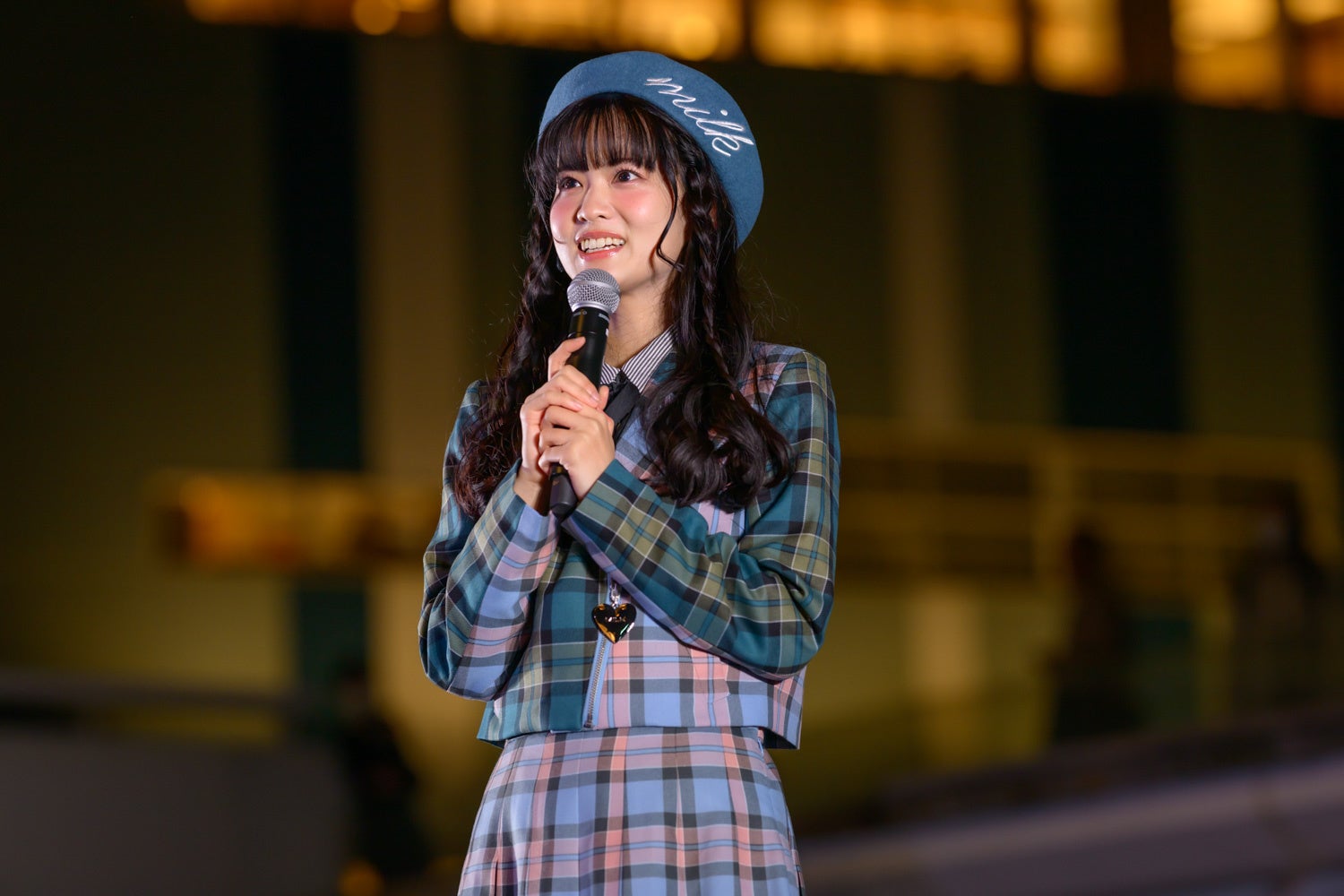 直後のMCで「最後のセリフは自分で言おうと思っていたんですけど、ここ最近リリースイベントをやっていて、そのイベント前に、私が“まだ見ない”と言って、みんなが“未来に行こうー!”って応えるコール&レスポンスが定番化していたので、ついついやってしまいました(笑)。80デシベルを超えてしまったら、すみません!」と事情を説明。今後のリリイベでもミニライブはあるので、歌うのか歌わないのか、ファンの瞬発力が試されそうだ。