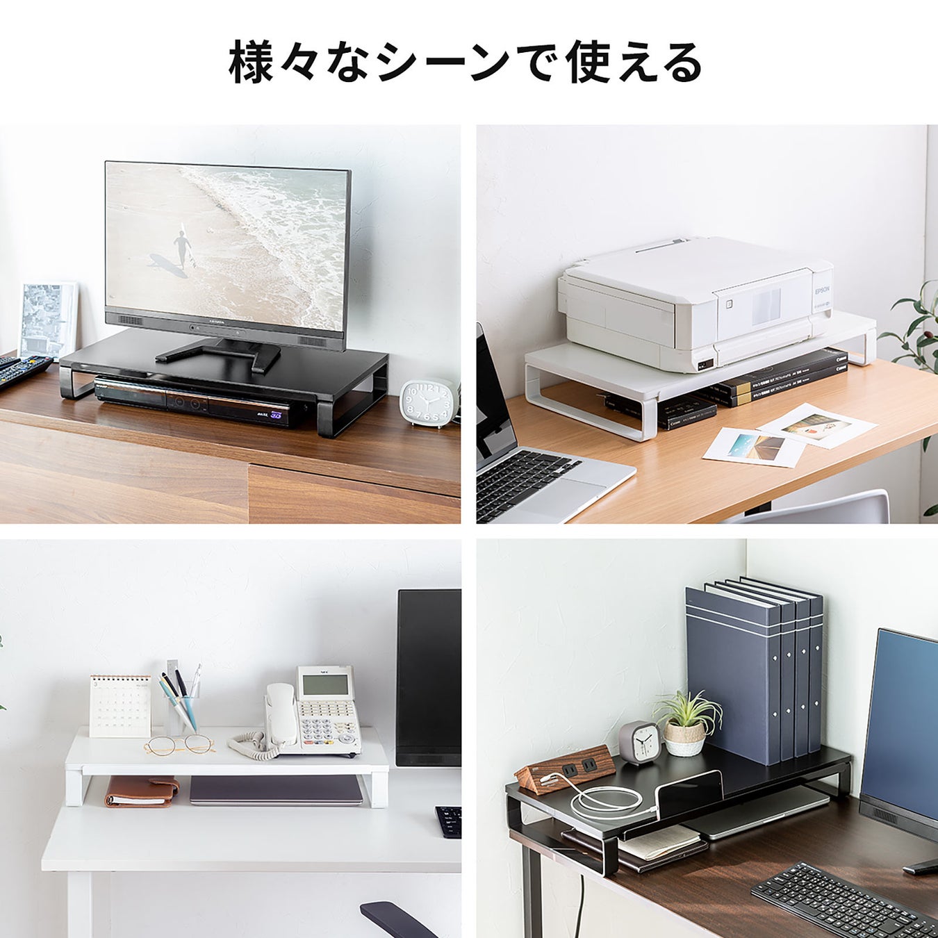 電話やプリンターやテレビ台としても便利です。デスクサイドに設置することにより、デスクシェルフとしても使えます。