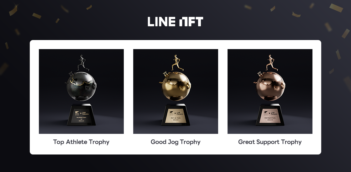 今回3年ぶりの開催となった「福岡マラソン2022」では、参加者が一体感を感じ、共に楽しめる大会の実現を目指し、新たな取り組みとしてテクノロジーを活用したさまざまな取り組みが実施されました。LINE NFTでも、テクノロジーとコミュニケーションの力で大会を共に盛り上げるべく、福岡マラソン実行委員会およびLINE Fukuokaと連携し、NFTを活用した取り組みを実施いたしました。本取り組みは、ランナー・応援企画・ボランティアとして大会を支えてくれた方を対象に、世界に1つだけの記念品「バーチャルトロフィー(NFT)」をプレゼントするNFT無料配布企画です。対象者へのNFT配布方法としてLINE NFTのNFT無料配布機能が採用されました。