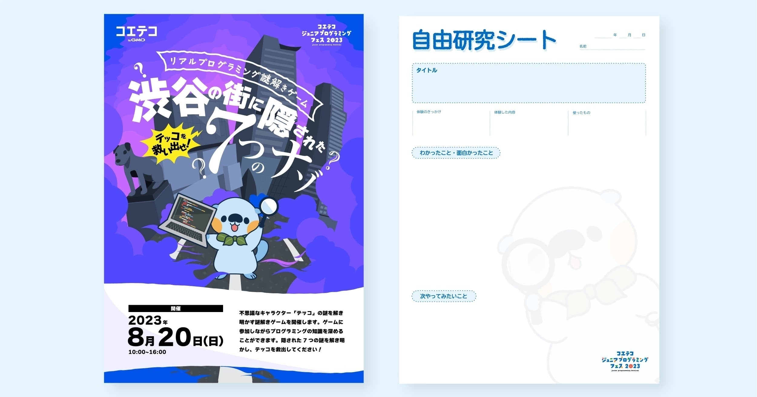 不思議なキャラクター「コエテコテッコ」の謎を解き明かす謎解きゲームを開催します。ゲームに参加しながらプログラミングの知識を深めることができます。隠された7つの謎を解き明かし、「コエテコテッコ」を救出してください!