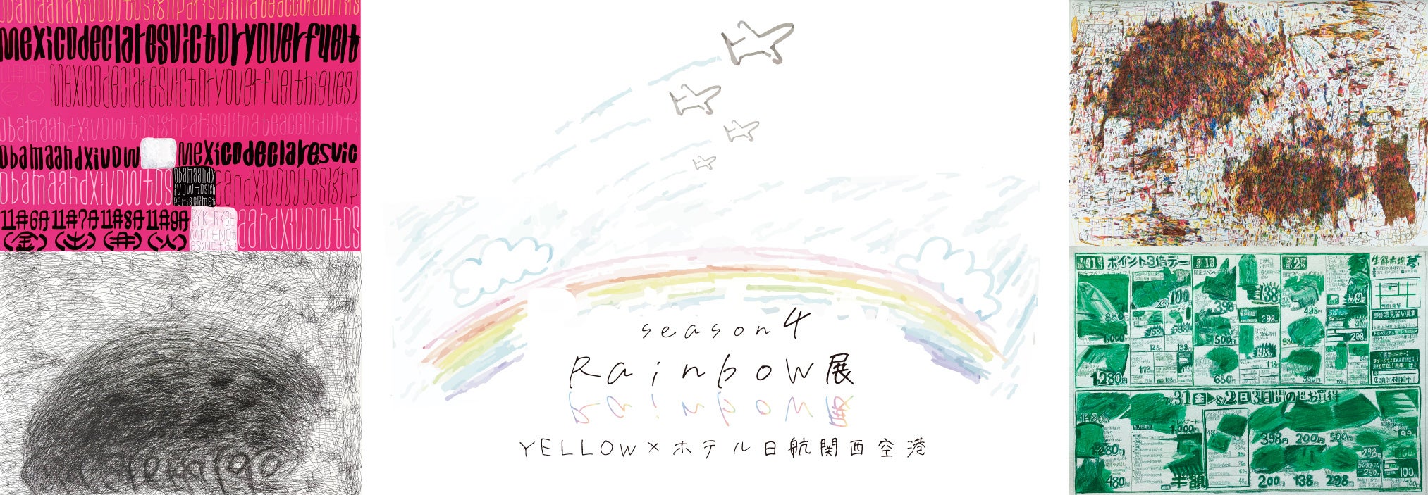 当ホテルでは、2階の通路スペースをギャラリーとして活用し、地元泉佐野市および泉州地域の魅力や地域で活躍する方々を紹介する取り組みを継続しております。『Rainbow展 Season 4』では、泉佐野市を拠点とする株式会社YELLOW(以下、YELLOW)所属アーティストによるアウトサイダーアートを展示いたします。