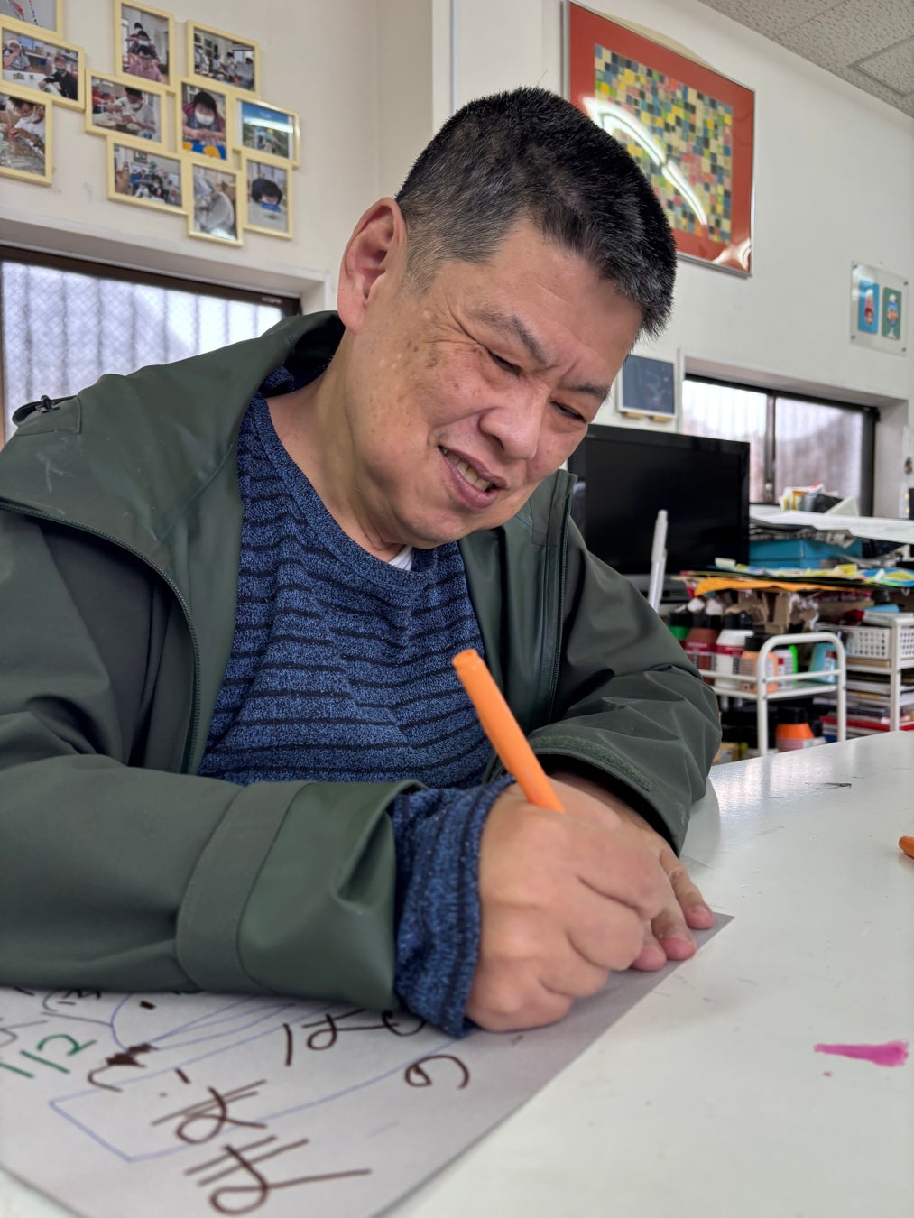 写真を模写し顔料ペンにて色彩豊かな作品を仕上げていく。