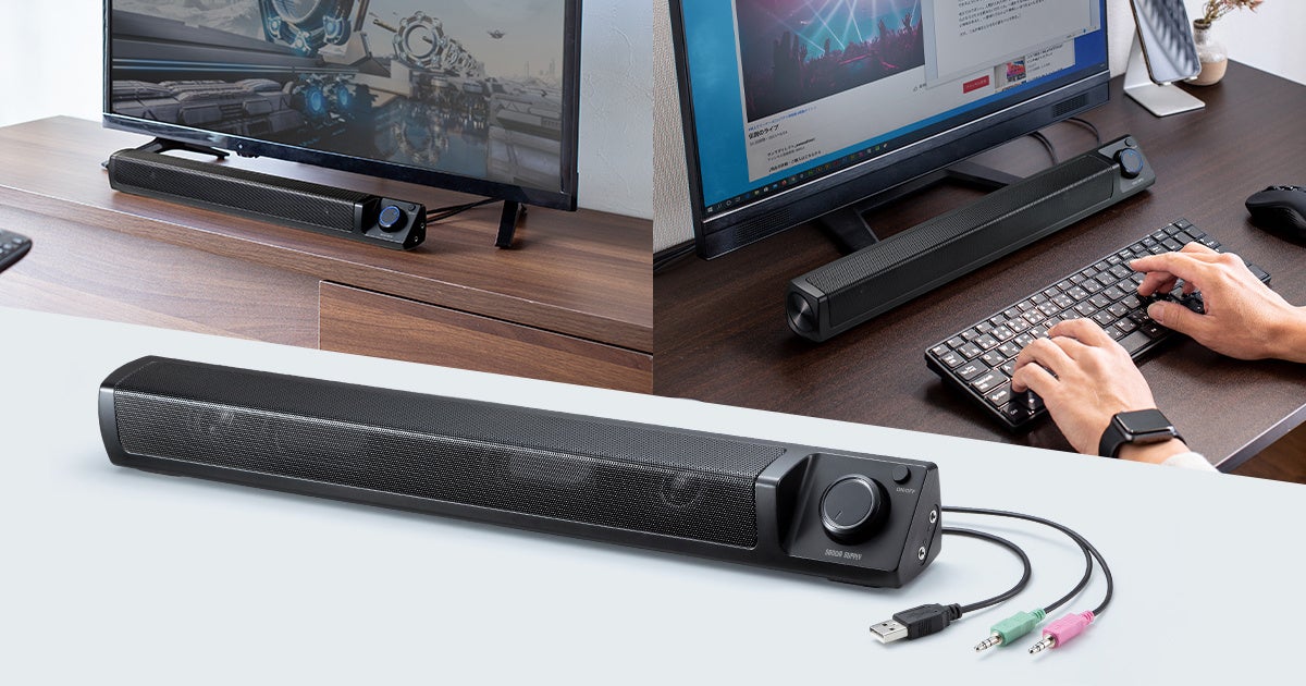 「MM-SPSBA3」は、USB電源のスリムサウンドバースピーカーです。